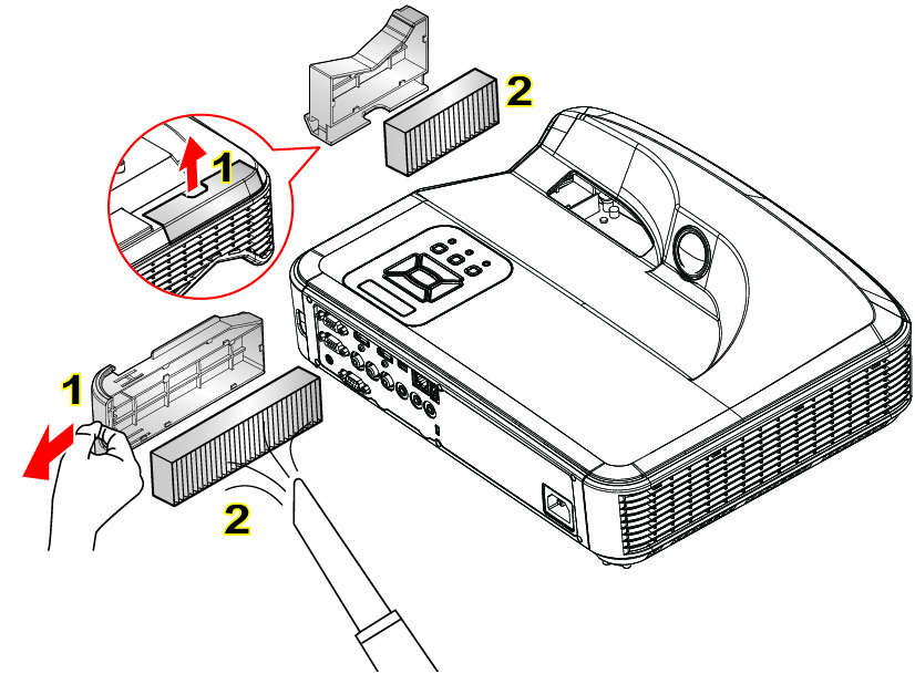 We recommend you clean the dust filter every 500 hours of operation, or more often if you are using the projector in a dusty environment.