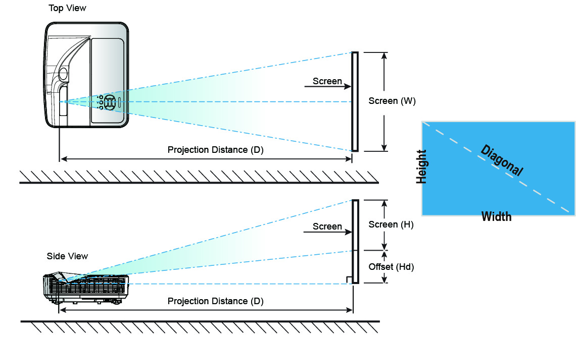 Be sure to keep at least 10 cm gap between the ceiling and the bottom of the projector.