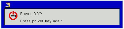 Press the power button on the remote control or on the control panel to turn off the projector. The following message will be displayed on the screen.