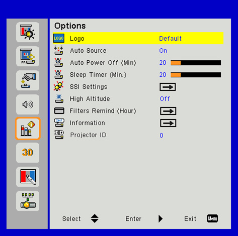 SSI Hours Used (ECO): Display the projector time of ECO mode.