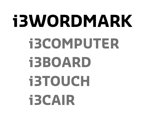 All Product/Software Names | The “i” is always lowercase. Every word/name following i3 is always in ALL CAPS. (ex. i3SIXTY, i3TOUCH, i3DOCS, etc.) ==> Always in the font: SANSA BOLD |
