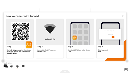 Geben Sie den Login-Code ein. Drücken Sie auf "Verbinden", um die Freigabe des Bildschirms zu starten.