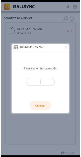 Enter the Login Code. Press “Play” to start sharing your screen.