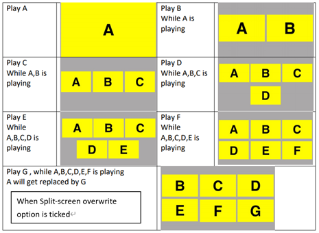 Écraser un écran partagé | Lorsque cette option est cochée, le dernier émetteur dupliqué écrasera le premier lorsque le nombre total d'émetteurs dupliqués est supérieur à 6. |