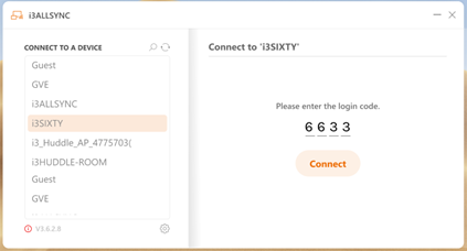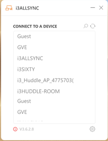 Wenn die i3ALLSYNC-Transmitter-App auf Ihrem Gerät bereits mit demselben Netzwerk verbunden ist wie das Empfängergerät (d. H. Ihr i3TOUCH PX, EX, ES), kann die i3ALLSYNC-Software das Empfängergerät finden. Dies bedeutet, dass Sie in den Suchergebnissen Ihrer i3ALLSYNC Transmitter-App auf Ihrem Laptop oder Smartphone nach dem Gerätenamen suchen müssen. In diesem Fall wurde der Receiver aufgerufen: i3SIXTY)