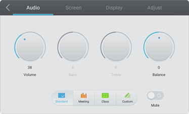 Controle el volumen de la pantalla manualmente o seleccione un ajuste de ecualización.