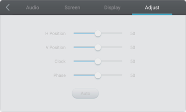 Al mostrar la fuente de entrada de señal VGA, los ajustes de reloj, fase y posición están disponibles para asegurarse de que la señal se muestra correctamente. Ajuste el reloj y la fase si la señal VGA parece tener distorsión de frecuencia. Un enlace a la última copia del manual siempre está disponible en la esquina superior derecha del panel de administración de la aplicación i3HUDDLE Launcher.