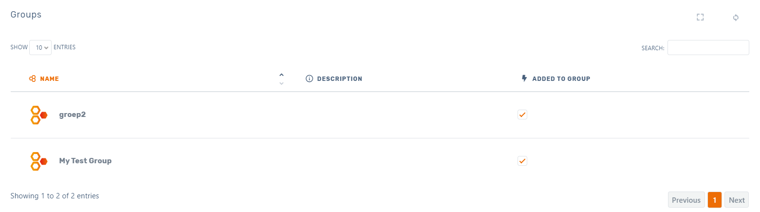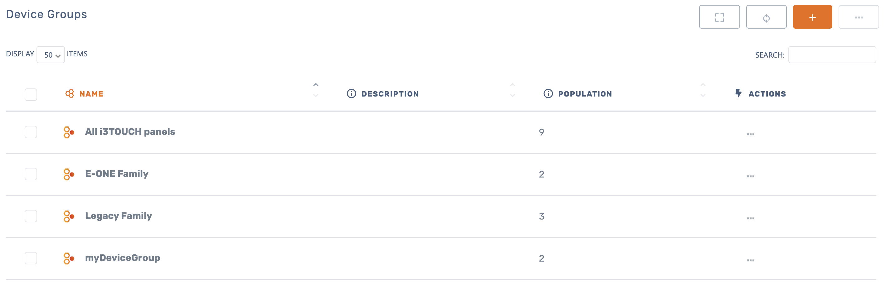 In dieser Tabellenansicht werden alle verfügbaren Gerätegruppen aufgeführt, sofern vorhanden. Neue Gruppen können durch Klicken auf die Schaltfläche „+“ erstellt werden, wohingegen auf bestehende Gerätegruppen durch Klicken darauf zugegriffen werden kann.