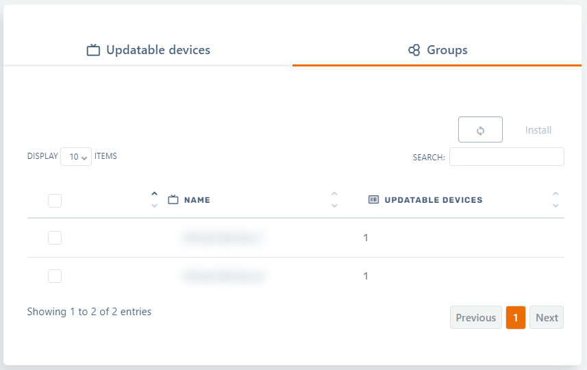 Öffnen Sie die Geräte- oder Gruppenübersicht, wählen Sie ein oder mehrere Elemente aus und klicken Sie auf die Schaltfläche „Installieren“.