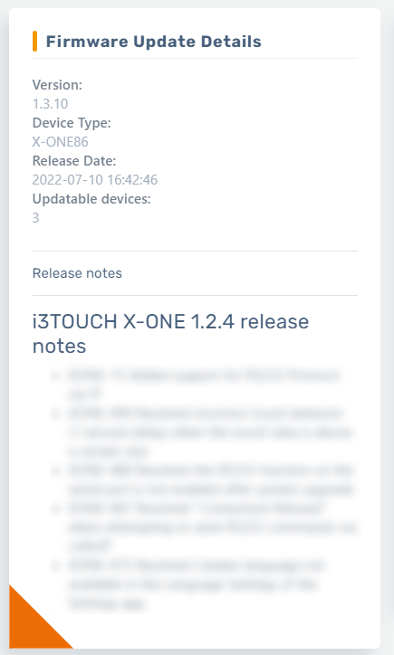 Der Firmware-Detailbildschirm bietet weitere Informationen zur ausgewählten Firmware. Neben den Informationen, die bereits auf dem Listenbildschirm verfügbar waren, werden dort auch die Anzahl der registrierten Geräte, die aktualisiert werden können, sowie die Versionshinweise angezeigt.