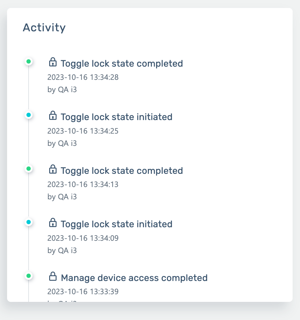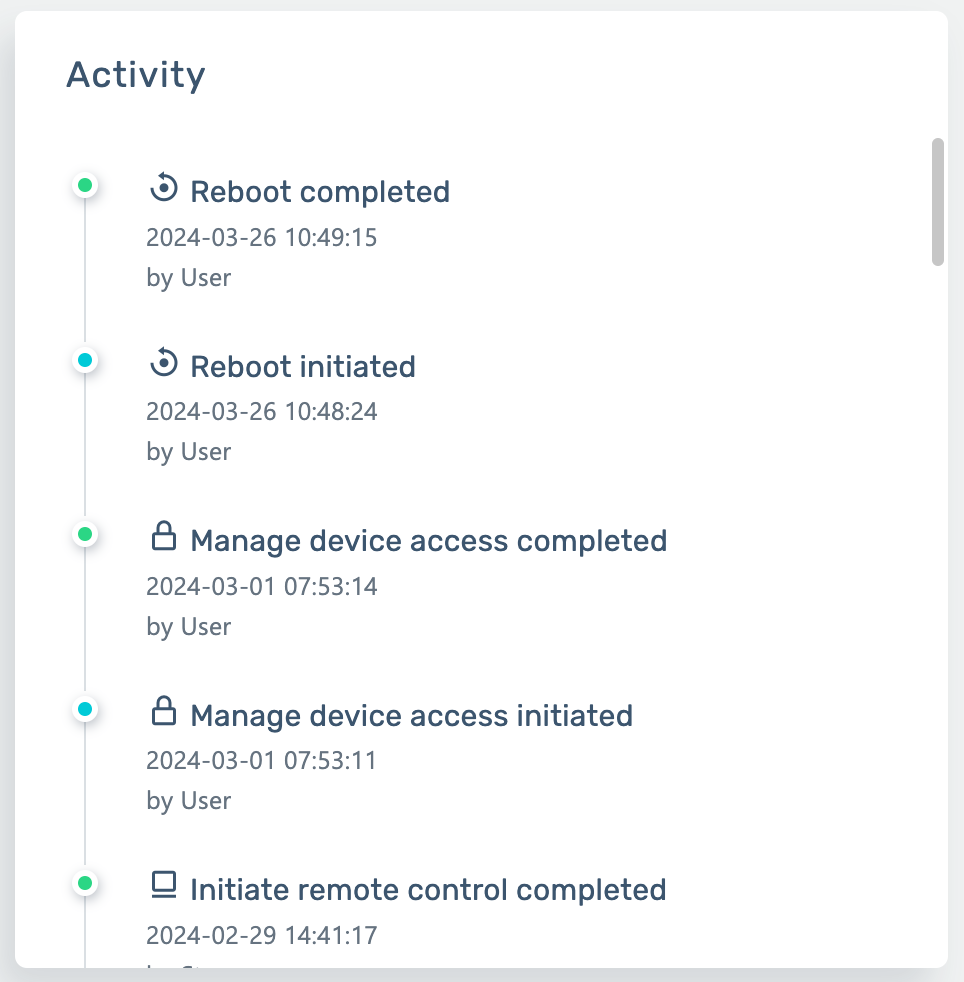Este widget comparte información en tiempo real sobre la actividad relacionada con acciones rápidas, gestión de acceso, configuraciones aplicadas y otros aspectos.