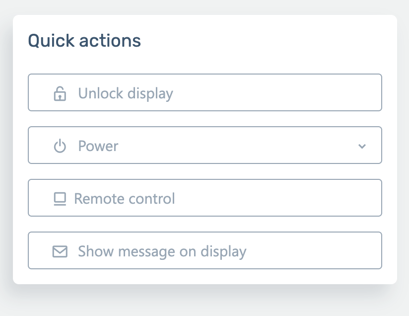 En la esquina inferior derecha de tu panel de control, encontrarás el widget de acciones rápidas. Con el bloqueo/desbloqueo de la pantalla i3TOUCH. Con este widget, ahora puedes realizar algunas acciones rápidas en la pantalla i3TOUCH seleccionada*: