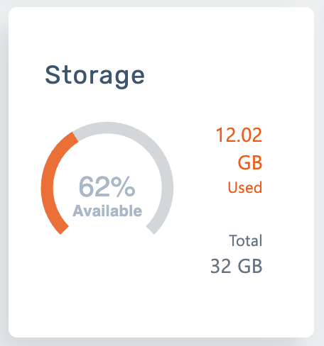 ![]() | El widget de Almacenamiento te proporciona una vista visual de cuánto espacio de almacenamiento está siendo utilizado en el dispositivo y cuánto espacio queda disponible. |