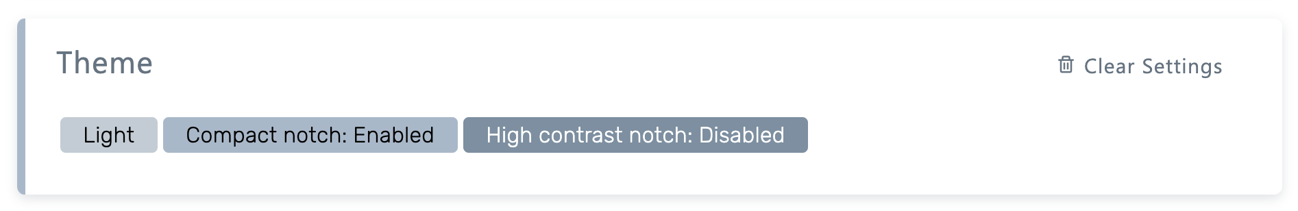 Eventualmente, la página de configuración mostrará todos los ajustes disponibles mostrados como tarjetas. Cada tarjeta de ajuste se puede seleccionar y configurar. Un ajuste que se ha configurado mostrará los valores como etiquetas debajo del título. Esto te brinda una descripción visual pero detallada de todos los ajustes dentro de la configuración. Se pueden borrar fácilmente haciendo clic en el botón "Borrar ajustes".