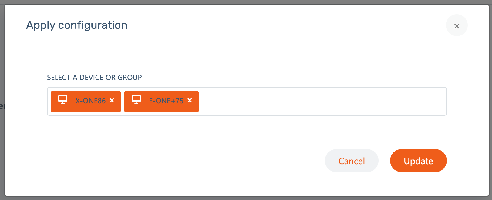 Desde la vista general del dispositivo o la vista general del grupo de dispositivos, también puedes aplicar configuraciones. Selecciona uno o varios dispositivos e ve al menú principal, que se muestra como tres puntos.