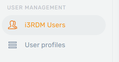 Company administrators can see an overview of all the i3RDM Users, and User Profiles if the feature is activated. In the main menu, under the section User management, select i3RDM Users.