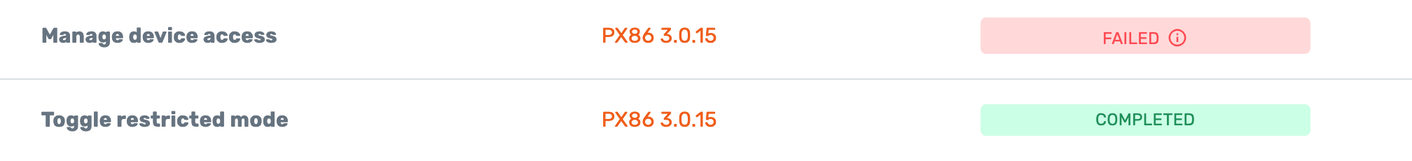 Een gebruiker kan op een dergelijke bulkopdracht klikken om verder te filteren in de lijst van displays waarnaar deze opdracht is verzonden. Hier kunnen ze de status van de opdracht voor elk afzonderlijk display vinden.