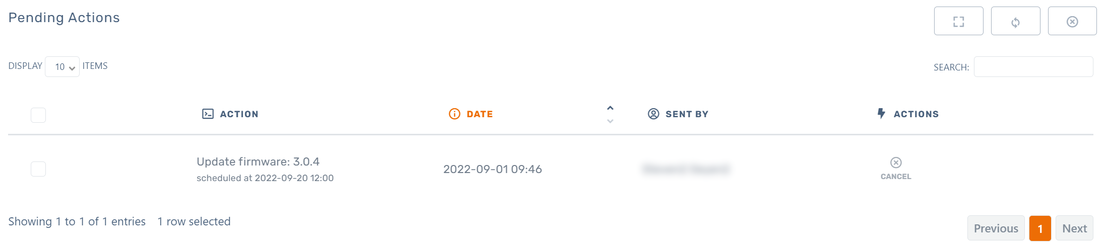 Until then it is listed in the pending actions on the device detail page. From that overview it is also possible to cancel the pending action.
