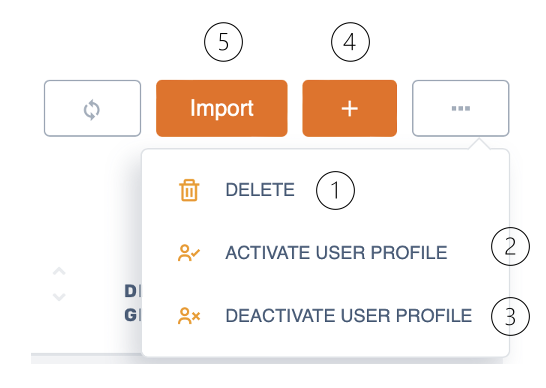 You can deactivate a User Profile, without the need to delete it. This can be done from the Detail page and from the table menu(3) in the User Profiles overview.