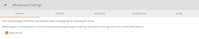 The whiteboard application supports multiple save and export options (adjustable in admin settings).