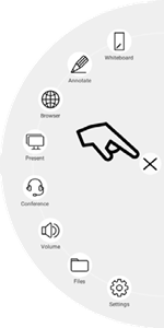 Bij de eerste opstart van de whiteboard-applicatie zal de i3SIXTY vragen om het viervingerige wisgebaar te kalibreren. Volg de instructies op het scherm om dit snelwisselgebaar te kalibreren en te activeren.