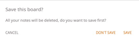 Hierdoor wordt de whiteboard applicatie afgesloten en worden alle pagina's permanent verwijderd. Er is geen mogelijkheid om verwijderde inhoud op te halen. Er wordt u gevraagd of u eerst uw notities wilt opslaan/exporteren, voordat u sluit.