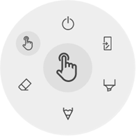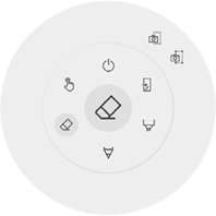 Bij het opstarten van de whiteboard toepassing zal het aanraken van het i3SIXTY-whiteboard met een vinger (of vingers) de gumfunctie standaard activeren. Dit zorgt voor de snelste notitie-ervaring: open het whiteboard, schrijf met de pen, gom met de vinger.