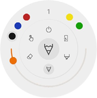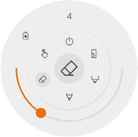 De schuifregelaar wordt gebruikt om de dikte van de gereedschapslijn te selecteren, het getal bovenin geeft de geselecteerde dikte aan, variërend van 1 tot 10. De 5 gekleurde cirkels zijn voorgedefinieerde opties om snel de kleur van de markeerstift of de pen te veranderen.