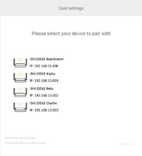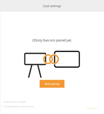 De knop "Cast" regelt het uitzicht van de knop "Cast to ..." in het i3SIXTY-menu. De standaardtoestand van deze knop is verborgen omdat deze geen nut heeft wanneer er geen i3HUDDLE of i3TOUCH is gekoppeld. Activeer na de koppeling met ten minste één apparaat in "Cast Settings”.