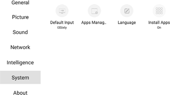 Standaard = i3SIXTY. Schakel over naar de HDMI-bron als u een vast HDMI-apparaat hebt aangesloten dat standaard moet worden weergegeven.