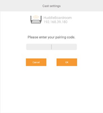 Selecteer de i3HUDDLE 3.0 of i3TOUCH(*) om te koppelen uit de lijst. De i3HUDDLE of i3TOUCH toont een koppelingscode op het scherm. Voer deze koppelingscode op de i3SIXTY in wanneer deze wordt opgevraagd.
