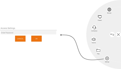 De i3SIXTY biedt de bedrijfsadministrator de tools om de gebruikers en de gast in te stellen en te vergrendelen om eventuele voorkeuren of instellingen te wijzigen. Open het instellingenmenu door te drukken op het pictogram Instellingen.