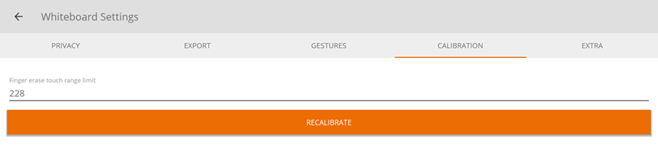 Upon first start-up of the whiteboarding application, the i3SIXTY will ask to calibrate the four-finger erase gesture. Follow the instructions on screen to calibrate and activate this quick-erase gesture.