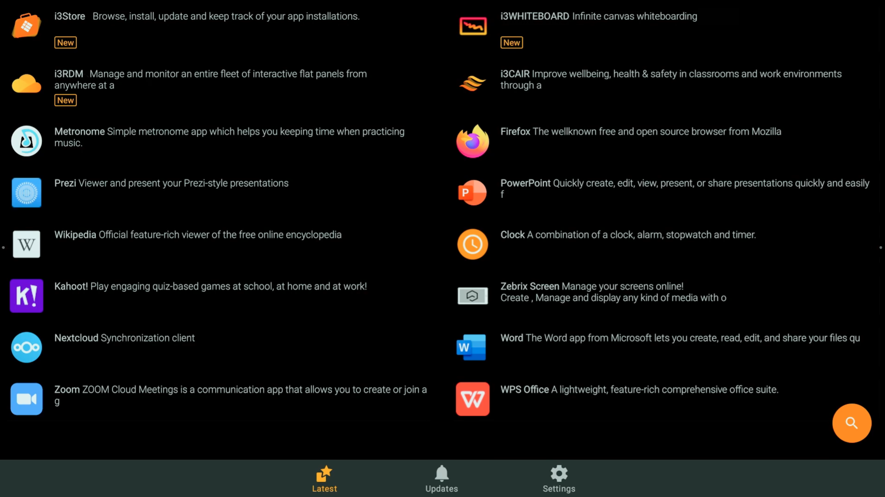 Als je op de i3STORE-knop in de i3LAUNCHER klikt, ga je naar het dashboardoverzicht en zie je alle beschikbare apps voor je apparaat.
