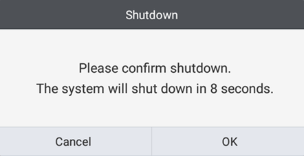 Presionar el botón de encendido durante poco tiempo hará que la pantalla se vuelva negra al entrar en el modo de espera. Sin embargo, esto no es un ciclo de energía, es necesario apagar la pantalla por completo presionando el botón de encendido durante al menos unos segundos para que un mensaje emergente aparezca en el oído de la aplicación.