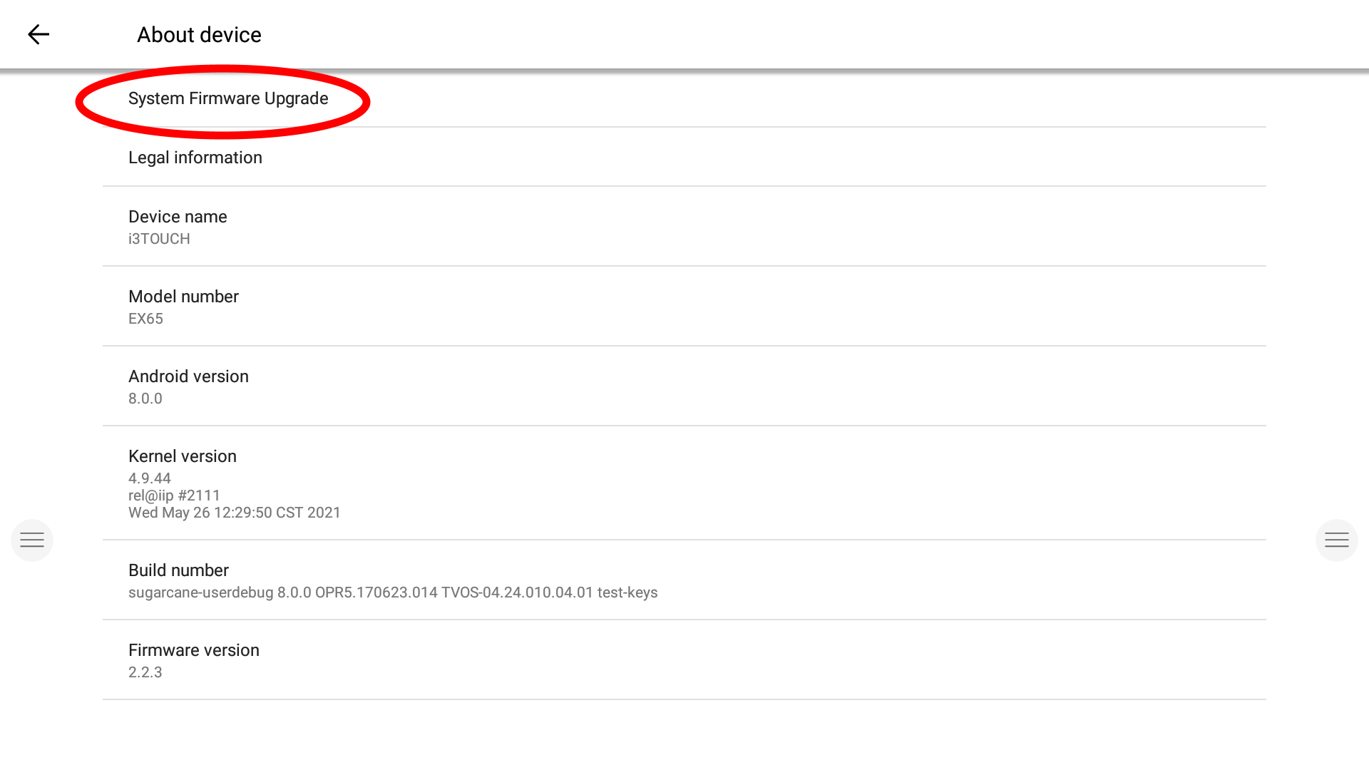Om de extra vereiste upgrade te installeren navigeert u naar het instellingenpaneel, en gaat u naar het menu "Over het apparaat". In dit menu klikt u bovenaan op "System Firmware Upgrade