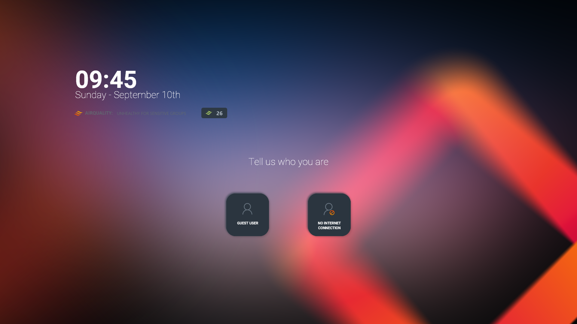 If the i3TOUCH display is not connected to an internet connection, i3STUDIO won’t be able to establish a connection with a user profile. The home screen may look like this. Users can use the Guest profile but can not log in to their profile.