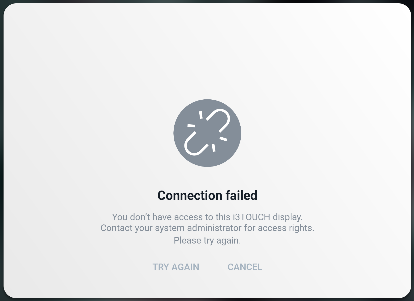 If you see this screen, it means that there are no user profiles configured to the i3TOUCH display. Contact your IT administrator if you want to use this display.