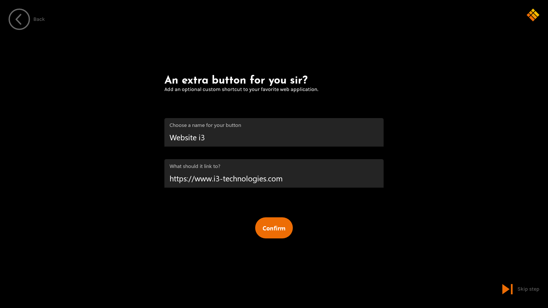 The Start-up Wizard can be skipped safely. All configuration settings remains possible afterwards, through the i3TOUCH’s settings application.