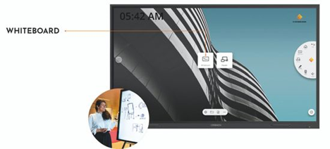 Die Whiteboard-Schaltfläche öffnet ein interaktives Whiteboard, mit dem Sie Notizen machen, Zeichnungen erstellen oder Workshops durchführen können. Die Ergebnisse können einfach mit allen Teilnehmern geteilt werden.