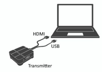 i3-Technologies bietet auch den i3ALLSYNC HDMI-Transmitter (separat erhältlich) für Meeting-Teilnehmer (Gäste) an, die die Client-Software nicht installieren können oder wollen. Sobald der i3ALLSYNC HDMI-Transmitter mit dem Display gekoppelt ist, müssen Sie nur noch das HDMI- und das USB-Kabel einstecken und die Taste drücken, um den HDMI-Inhalt sofort auf dem Bildschirm anzuzeigen.