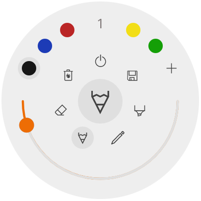 Le curseur permet de sélectionner l'épaisseur de trait de l'outil, le nombre en haut indique l'épaisseur sélectionnée (de 1 à 10). Appuyez sur l’une des cinq couleurs prédéfinies pour changer rapidement la couleur du marqueur ou du stylo.