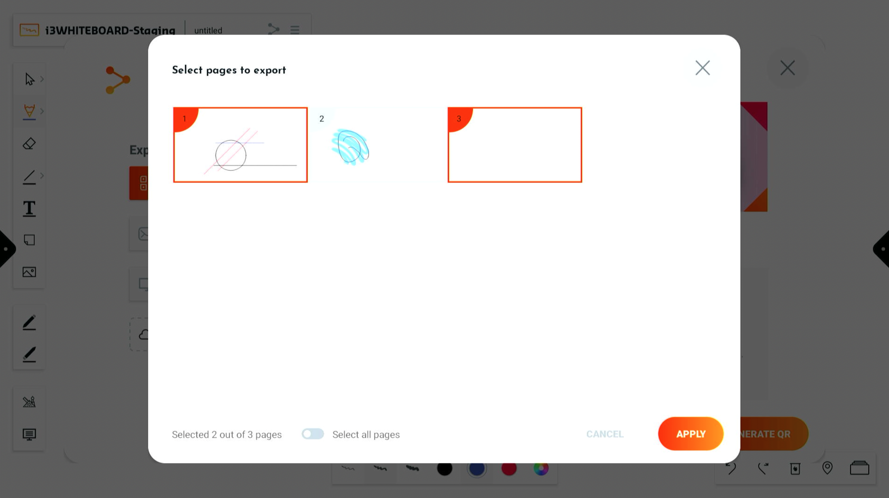 Sie können wählen, ob Sie nur eine oder mehrere Seiten als PDF exportieren möchten. Dies ist nützlich, wenn Sie viele Seiten in Ihrer i3WHITEBOARD-Datei haben, aber nur eine bestimmte Seite benötigen. Standardmäßig werden alle Seiten exportiert.