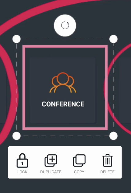 El menú Acciones permite bloquear, duplicar, copiar y pegar y eliminar los objetos seleccionados.