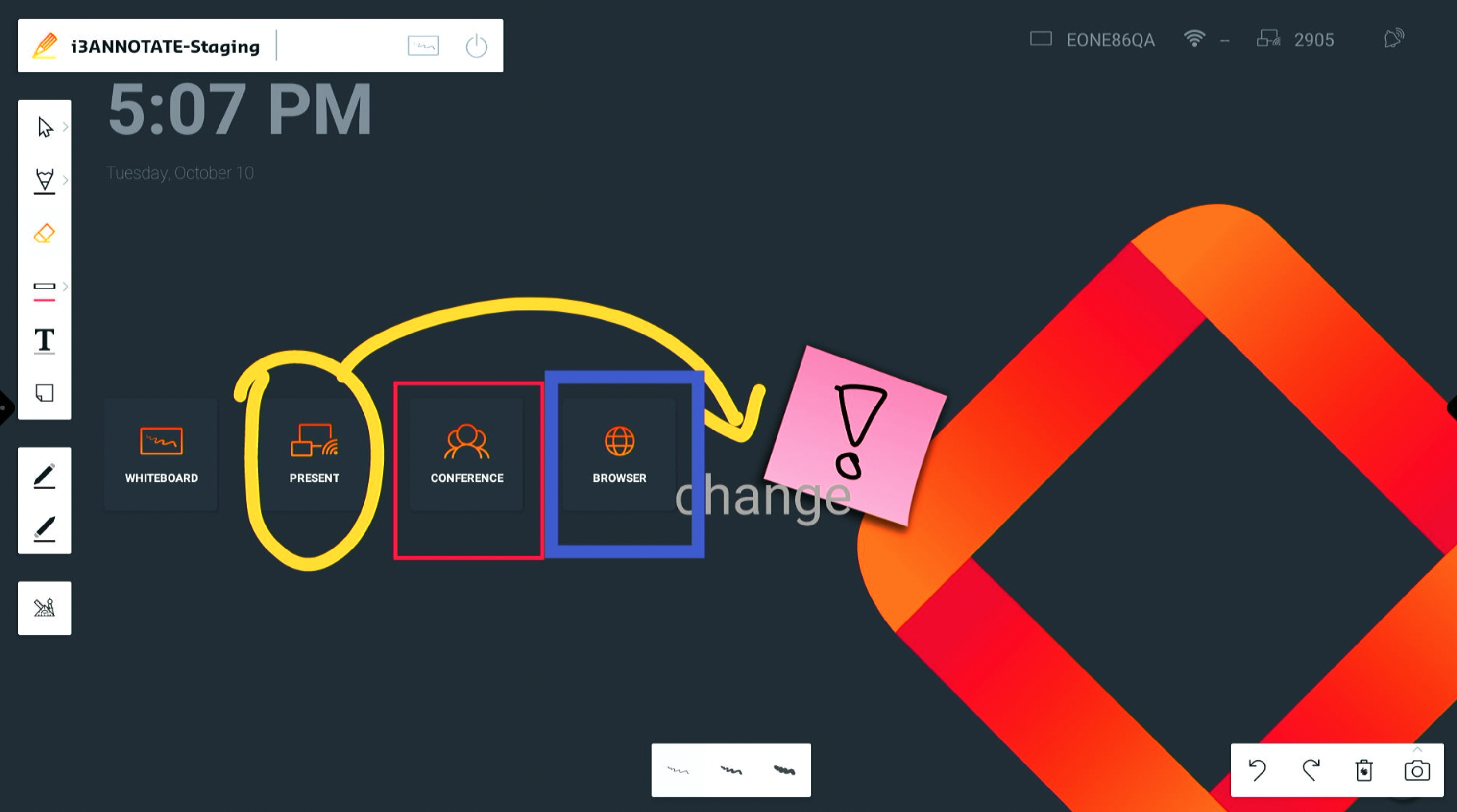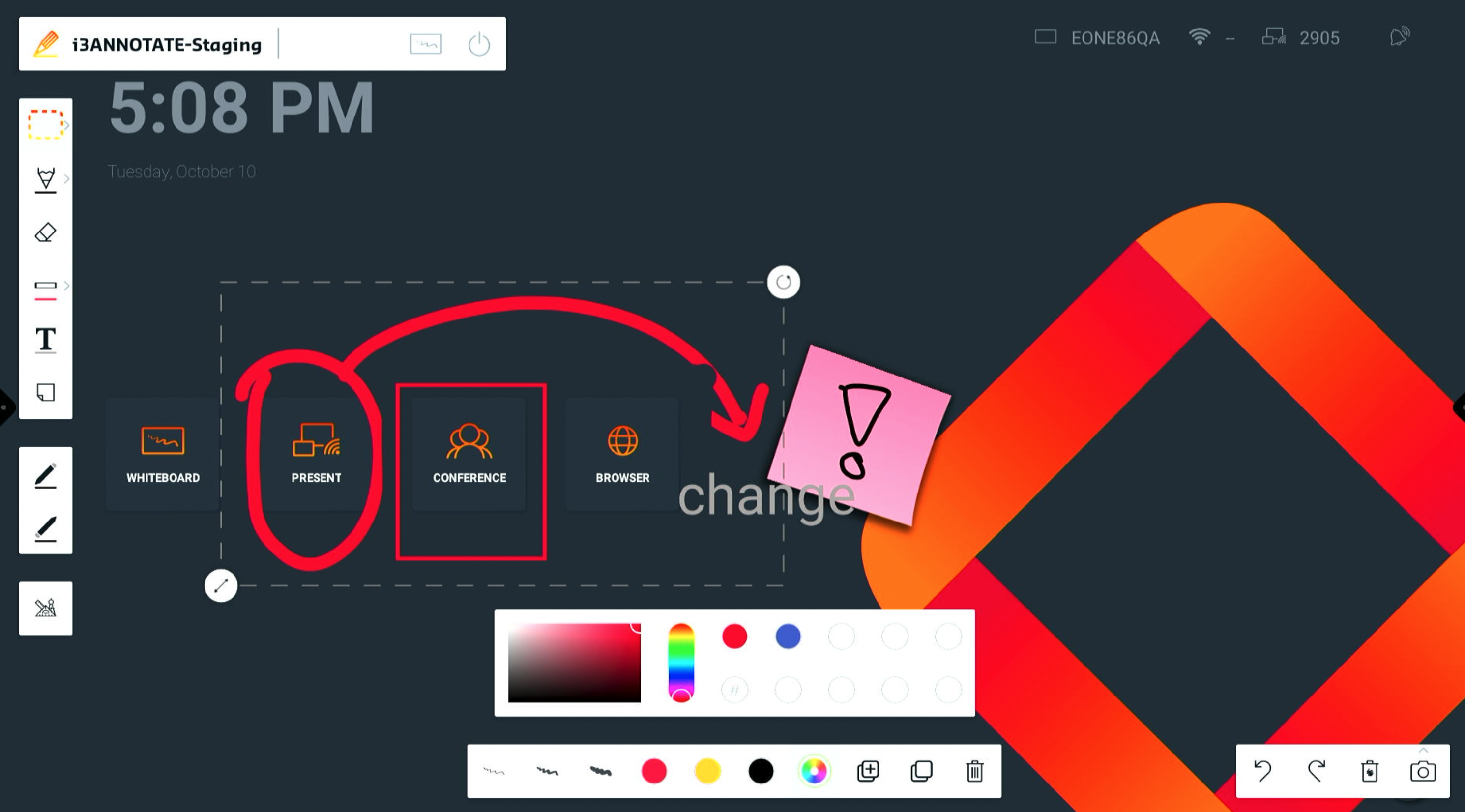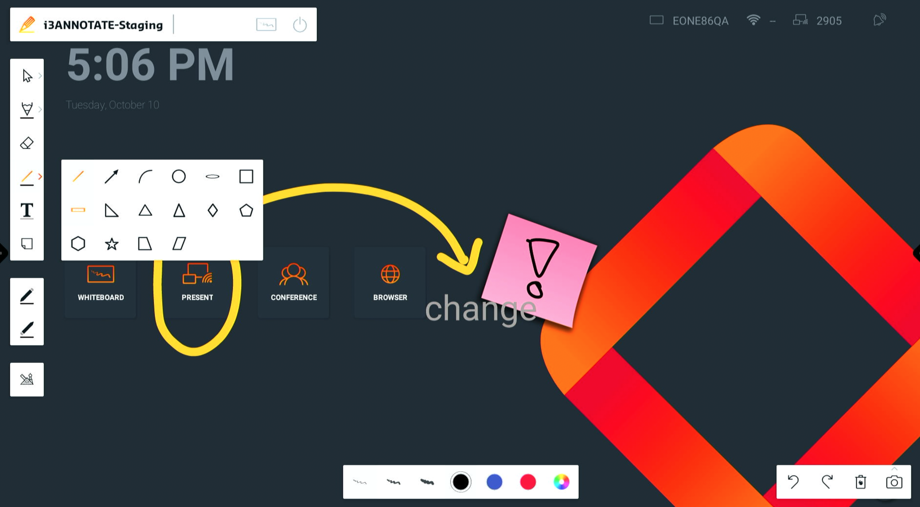 i3ANNOTATE provides many of the same tools as i3WHITEBOARD, which you can use to interact with the canvas.