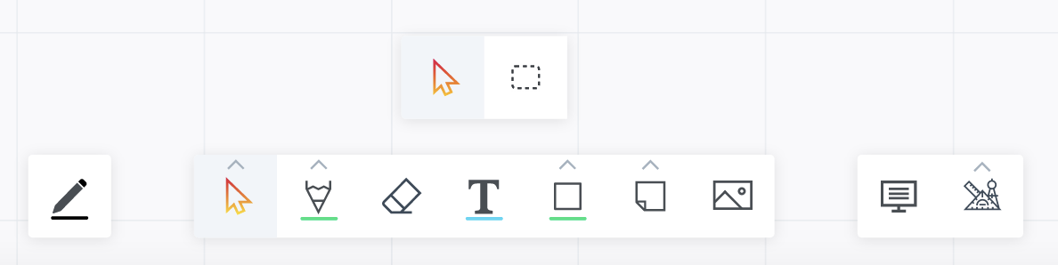 On the i3WHITEBOARD you’ll find several tools to work with, divided into three sections.