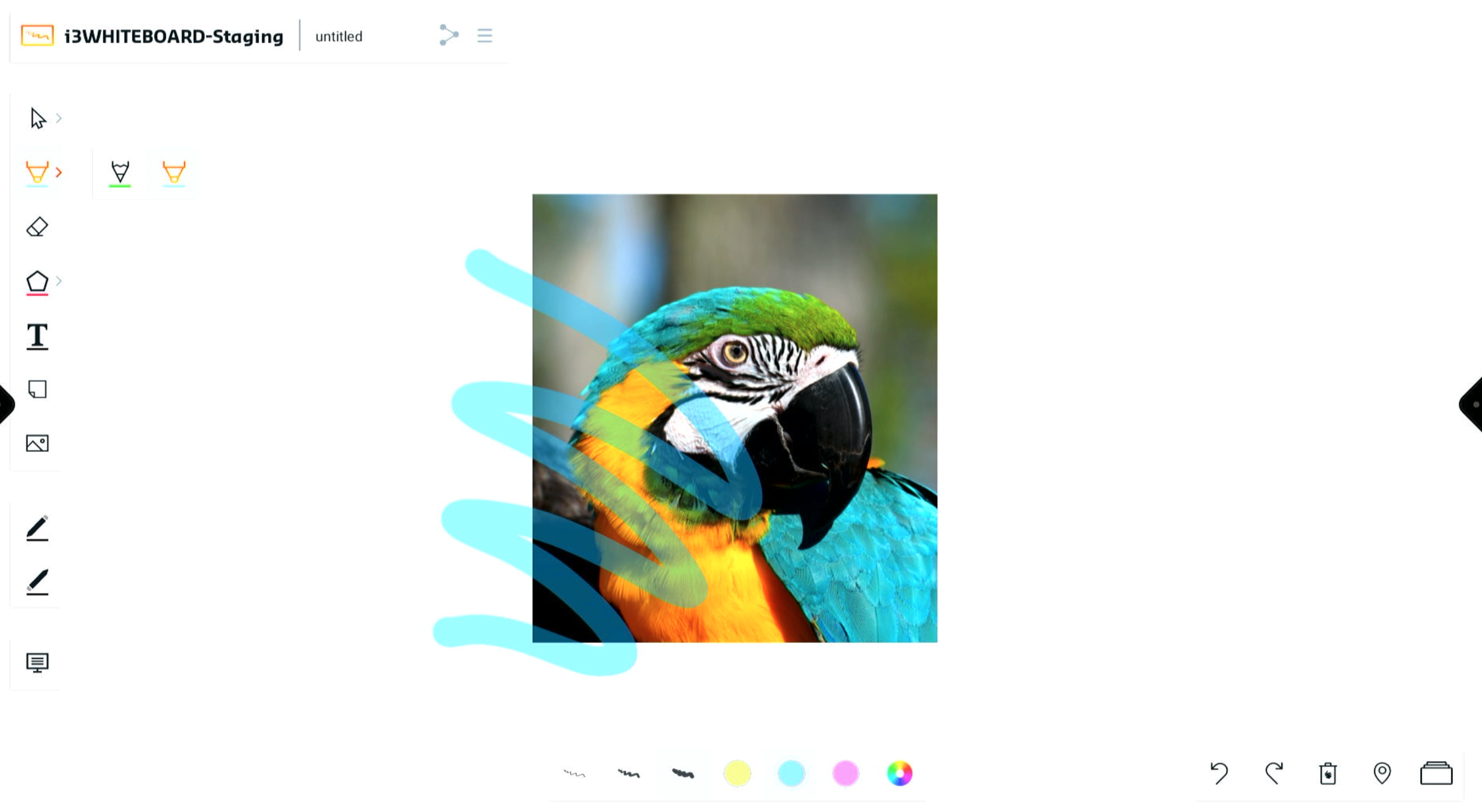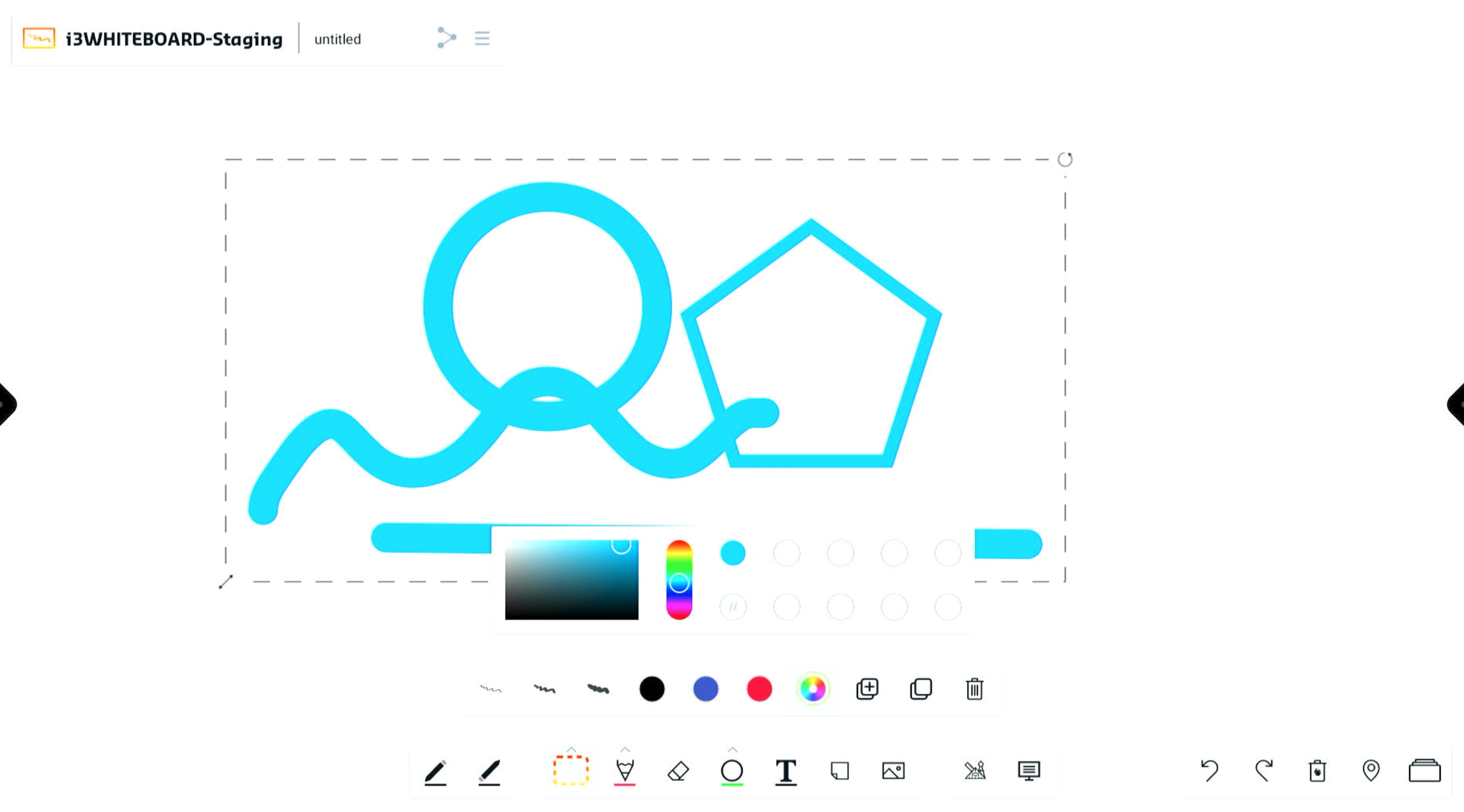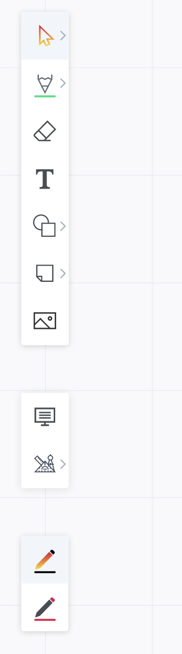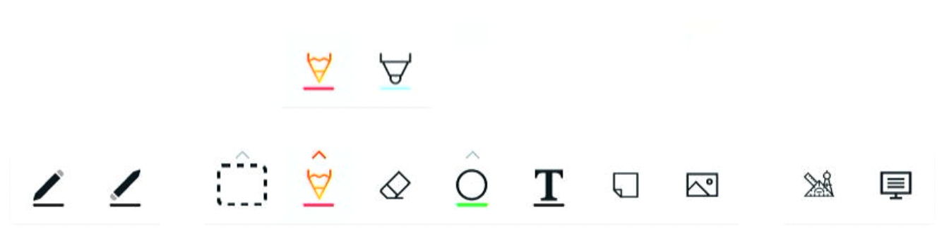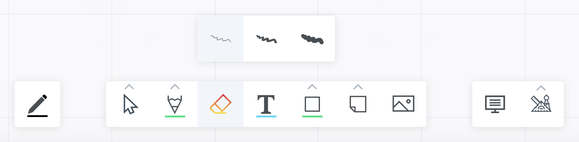 Some i3TOUCH displays come with one or more physical pens. If you have one, you will see the number of pens in i3WHITEBOARD as a separate tool menu. Each pen size will have its own icon, with the color indicator visible. This way you’ll always have a good overview of the colors you’re drawing with.