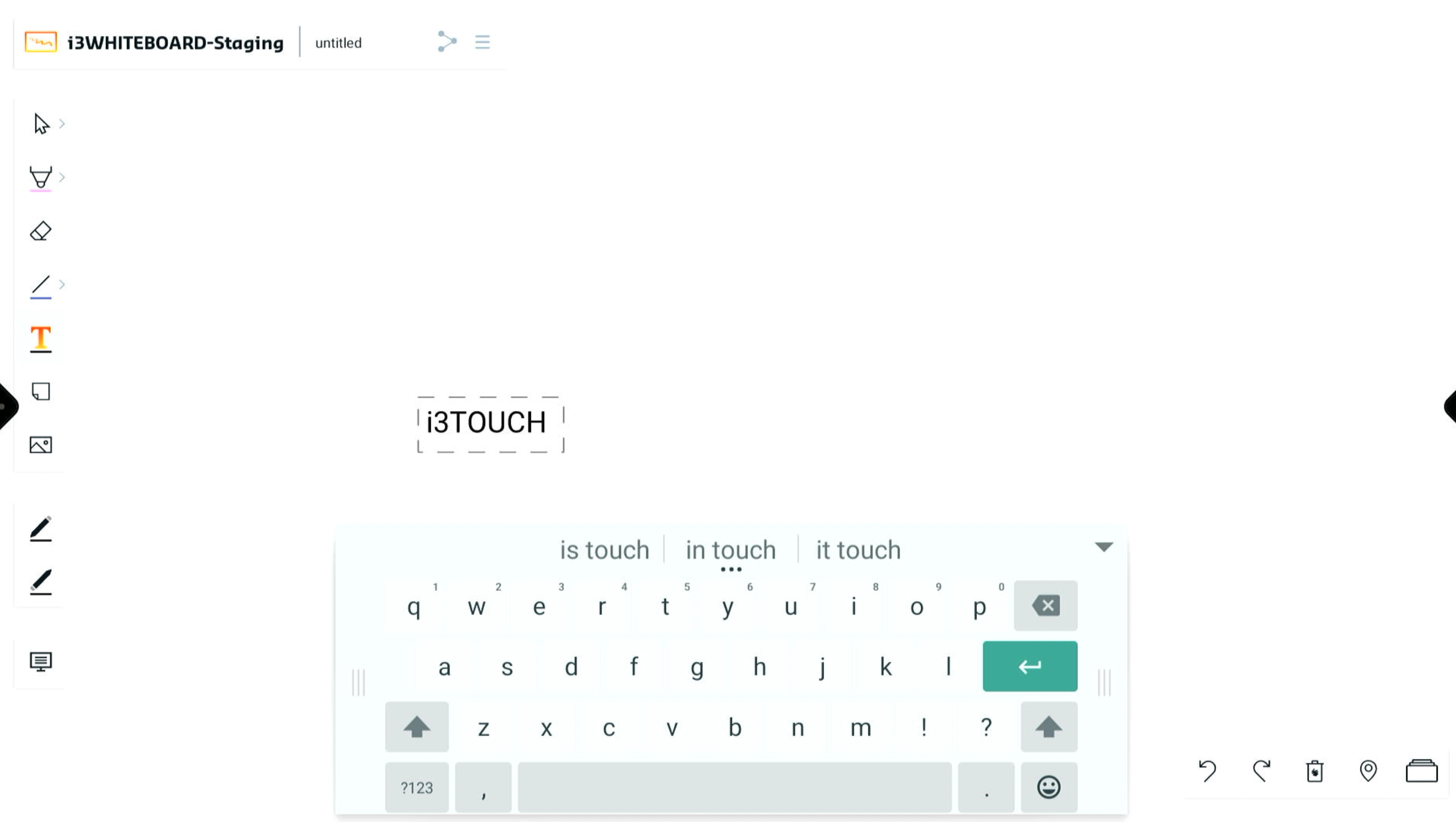 Use the Text tool to type text to the canvas using the on-screen keyboard.
