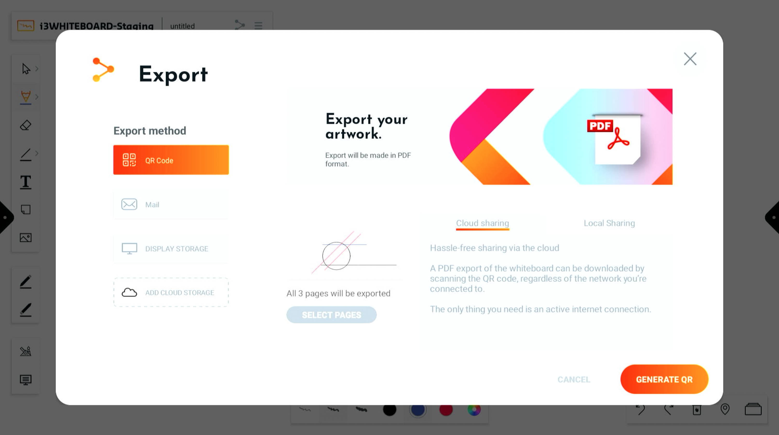 Cette fonction peut être pratique si vous souhaitez que le PDF soit disponible sur l'écran i3TOUCH ou sur votre clé USB connectée. Choisissez un nom et sélectionnez un dossier où vous souhaitez exporter le fichier.