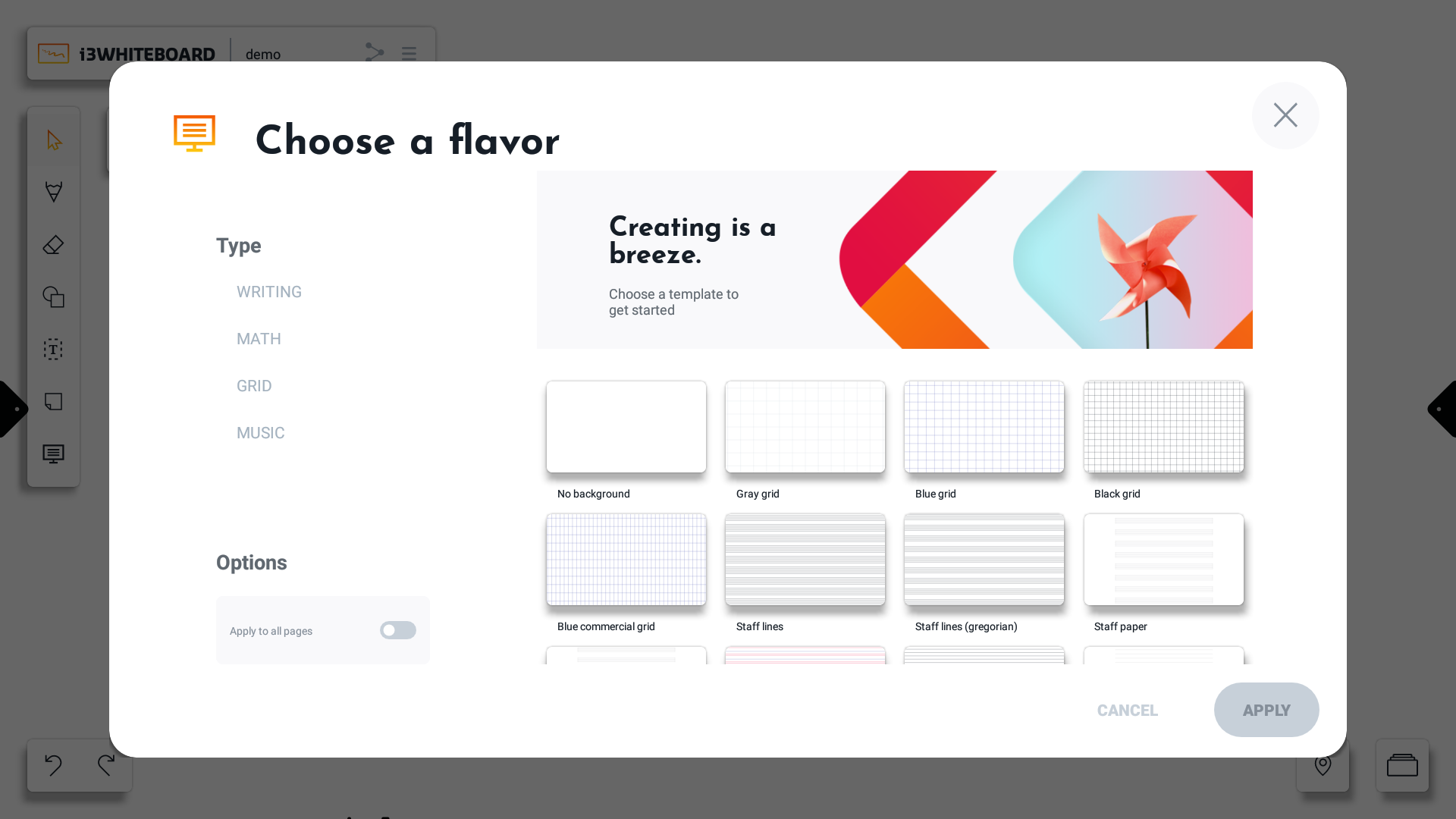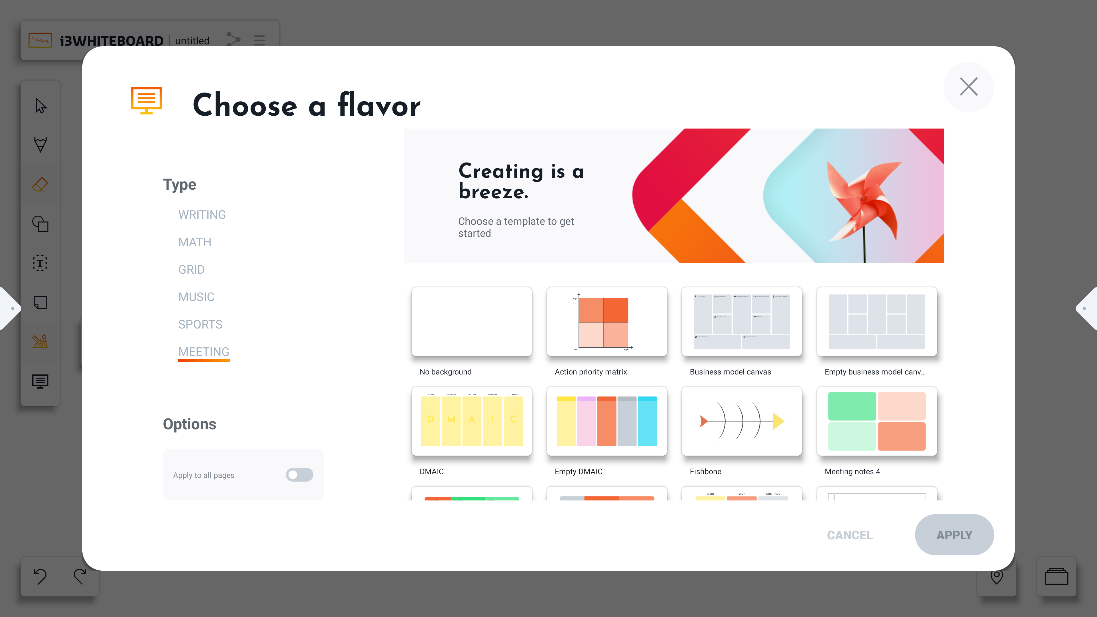 The “Apply to all pages” option will apply the background to all existing boards.